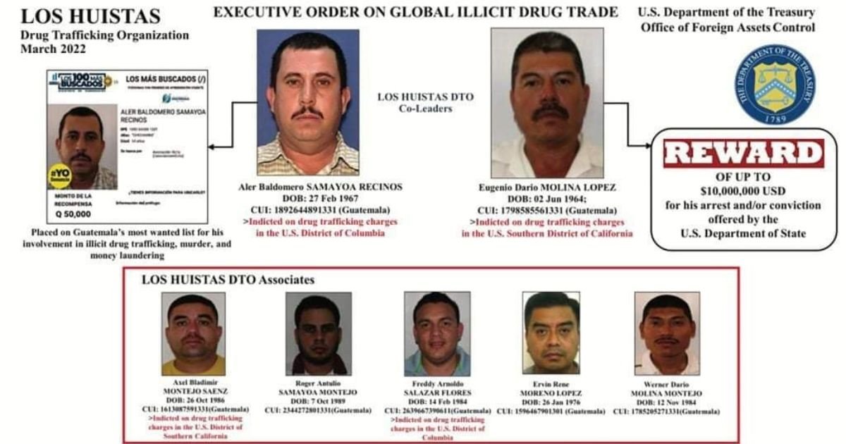 “Los grupos criminales tales como Los Huistas contribuyen a la inestabilidad en Guatemala, contrabandean narcóticos como cocaína, metanfetaminas y heroína desde Guatemala a través de México, para distribuir en Estados Unidos”, dijo el entonces subsecretario para Terrorismo e Inteligencia Financiera del Departamento del Tesoro, Brian E. Nelson.