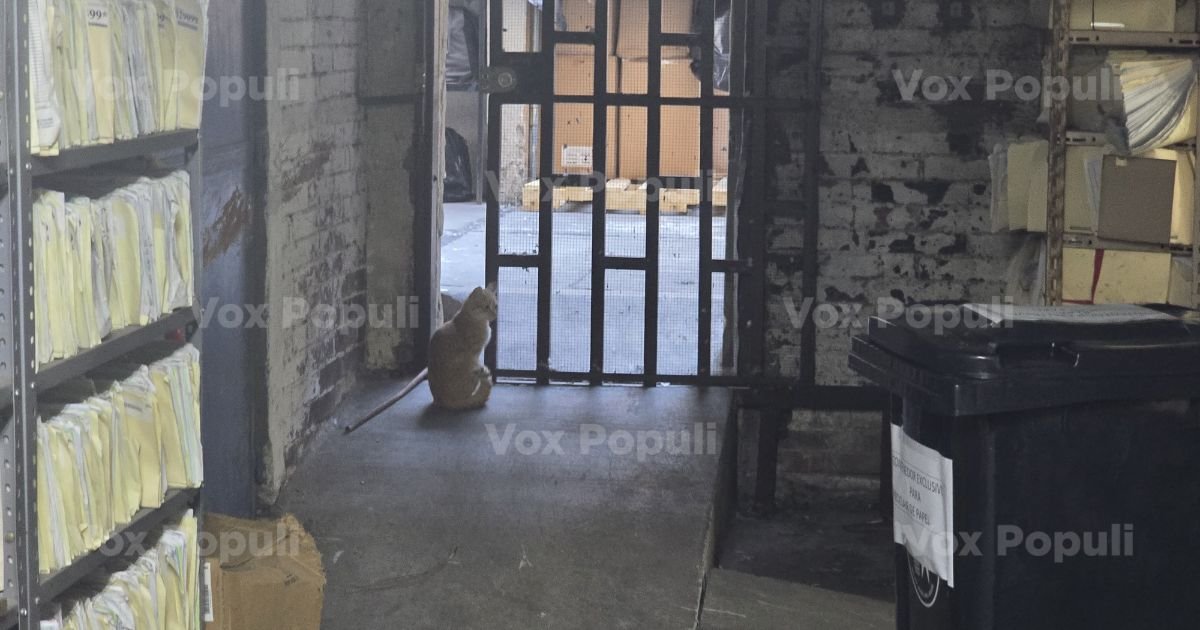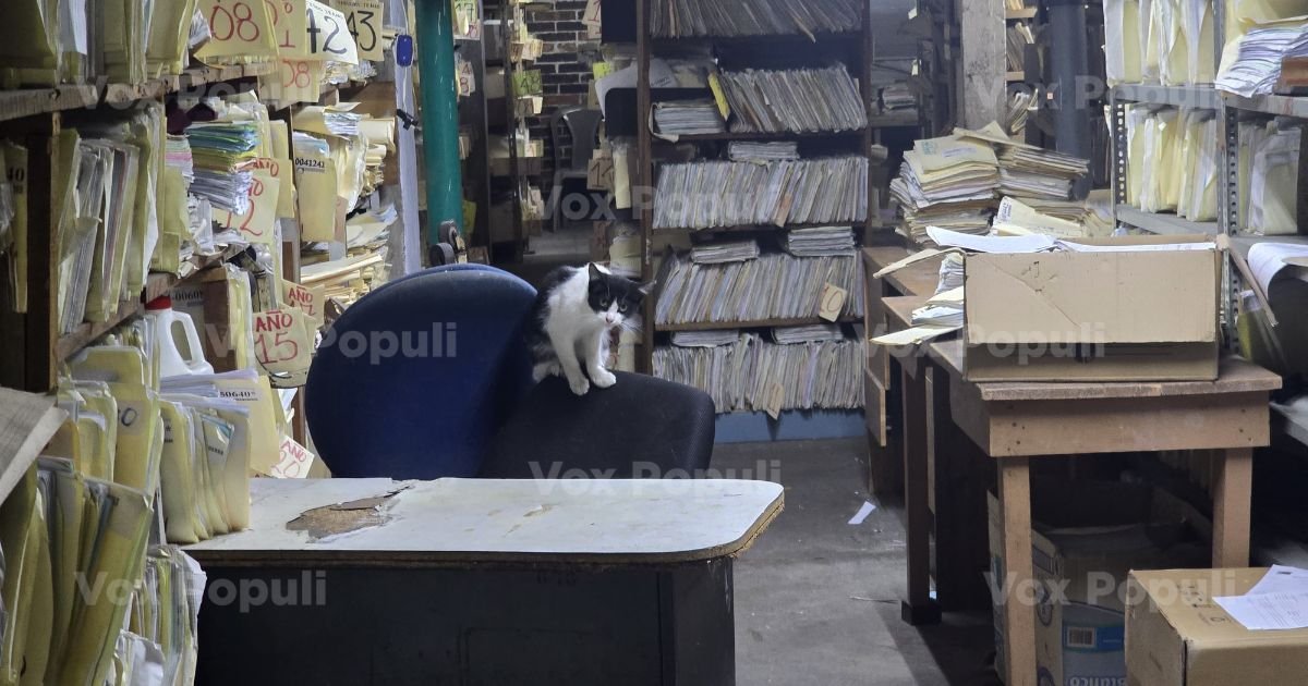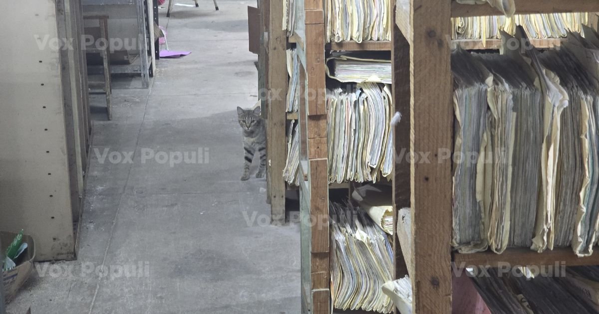 Vox Populi constató esta alarmante realidad. En las imágenes se observa a los gatos deambulando entre los archivos, que yacen amontonados sin orden ni cuidado, mientras los empleados evitan a toda costa permanecer en el lugar.