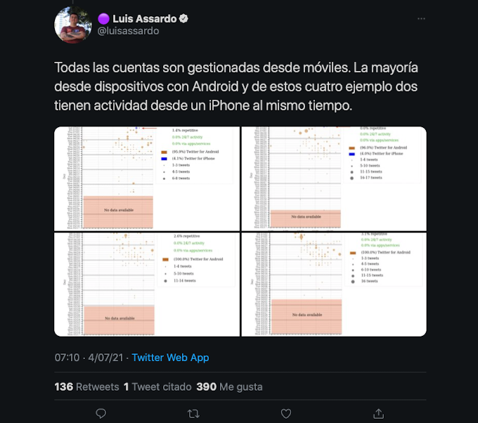 Assardo resalta en su cuenta de Twitter que el término netcenter se refiere a un servicio pagado y en el cual muchas cuentas actúan con un mismo objetivo.