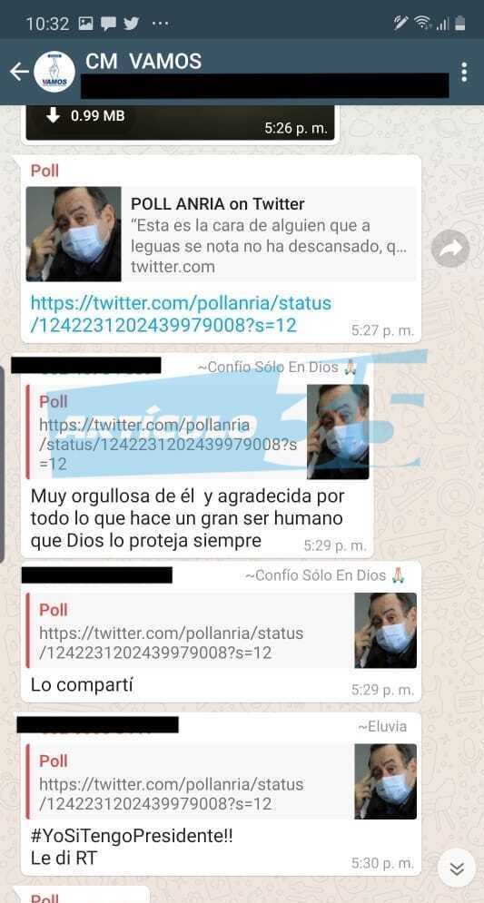 Pero eso no es todo. “Vamos CM” se ha mantenido vigente durante el 2020 y 2021, y además, es financiado con recursos del Estado. Este chat es coordinado por Poll Anria desde Casa Presidencial cuando se encuentra en Guatemala y desde Panamá cuando regresa a su país para administrar sus negocios y visitar a su familia.