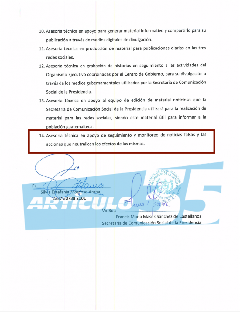 Entre sus funciones estaban la “grabación de historias a las actividades del Organismo Ejecutivo coordinadas por el Centro de Gobierno” y “monitoreo de noticias falsas y acciones que las neutralicen”.