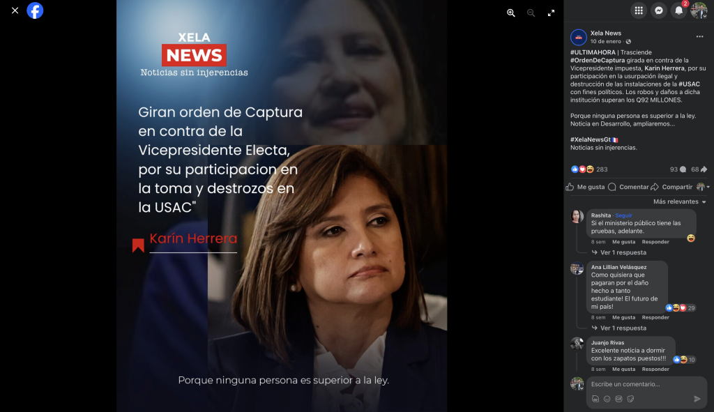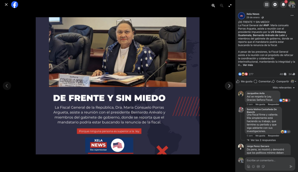 De la misma manera que Red América, un supuesto medio de comunicación que tiene vínculos con Guatemala Inmortal y netcencers, Xela News y Cardenas respaldan a la fiscal general, Consuelo Porras y a otros fiscales del Ministerio Público.