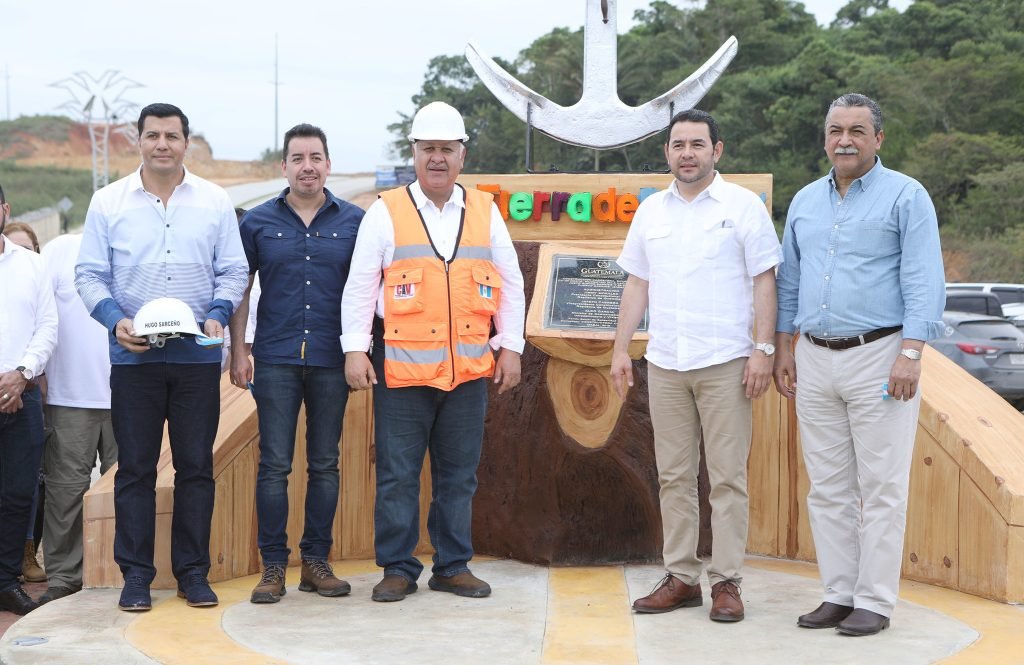 Manuel Conde Orelllana y Jimmy Morales el 20 de enero de 2018 en la inauguración de carretera en Izabal (Fotografía: Gobierno de Guatemala)