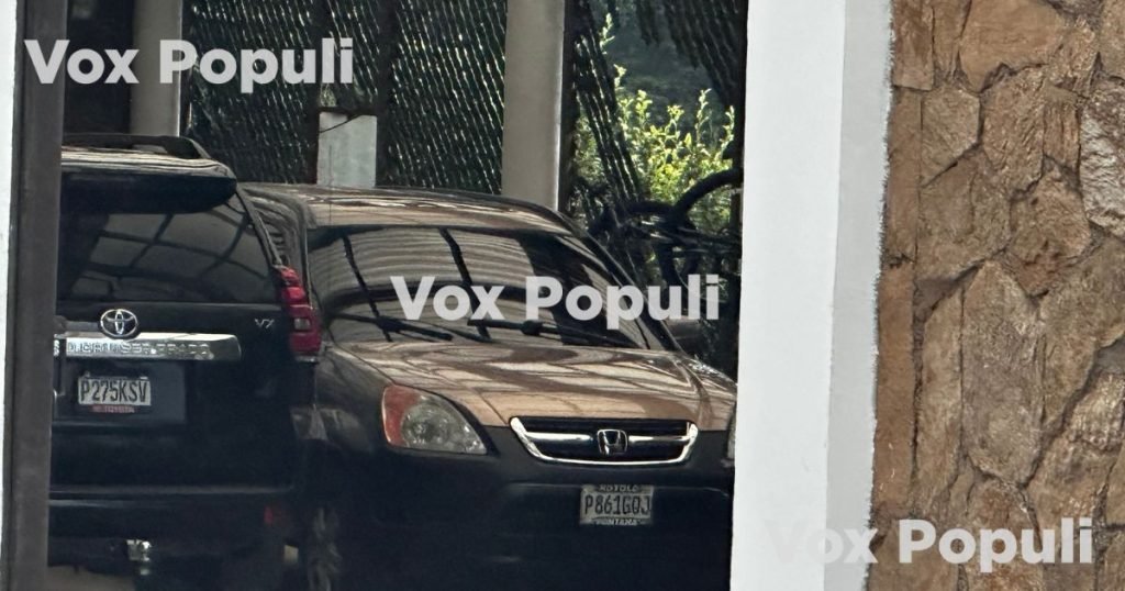 Durante la investigación se documentó que en el parqueo de la nueva casa de la hermana de Miguel Martínez se encontraban dos vehículos. El primero fue una Toyota Land Cruiser Prado placas P-275KSV modelo 2023 a nombre de Sergio Guillermo Giron Lezana.