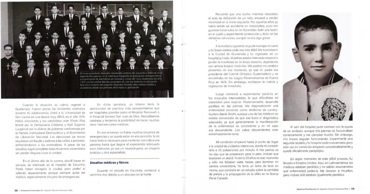 El texto es también una suerte de hoja de vida que deja de lado la “rendición de cuentas” que habría justificado el gasto en su producción. En 1985 y 1990, asegura Giammattei, trabajó en el Tribunal Supremo Electoral (TSE) como coordinador de las elecciones de esos años a pedido del magistrado presidente Arturo Herbruger Asturias.