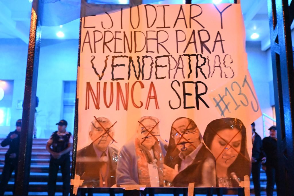 “Consuelo cerota te vas a ir al bote”, “Consuelo golpista vos sos la terrorista”, “Curruchiche corrupto”, “Curruchiche ladrón”, fueron solo algunas de las consignas expresadas y también plasmadas en pancartas.