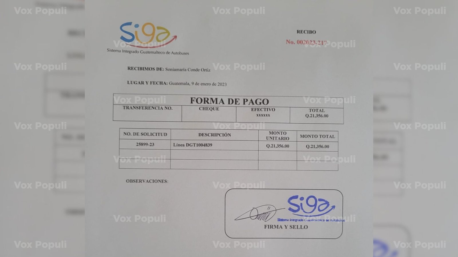 Para asegurar que las personas compren líneas, Soniamaría Conde Ortíz les muestra documentos en los que supuestamente ella aparece como propietaria de varios autobuses de Transurbano y les asegura que generan ganancias diarias por miles de quetzales.