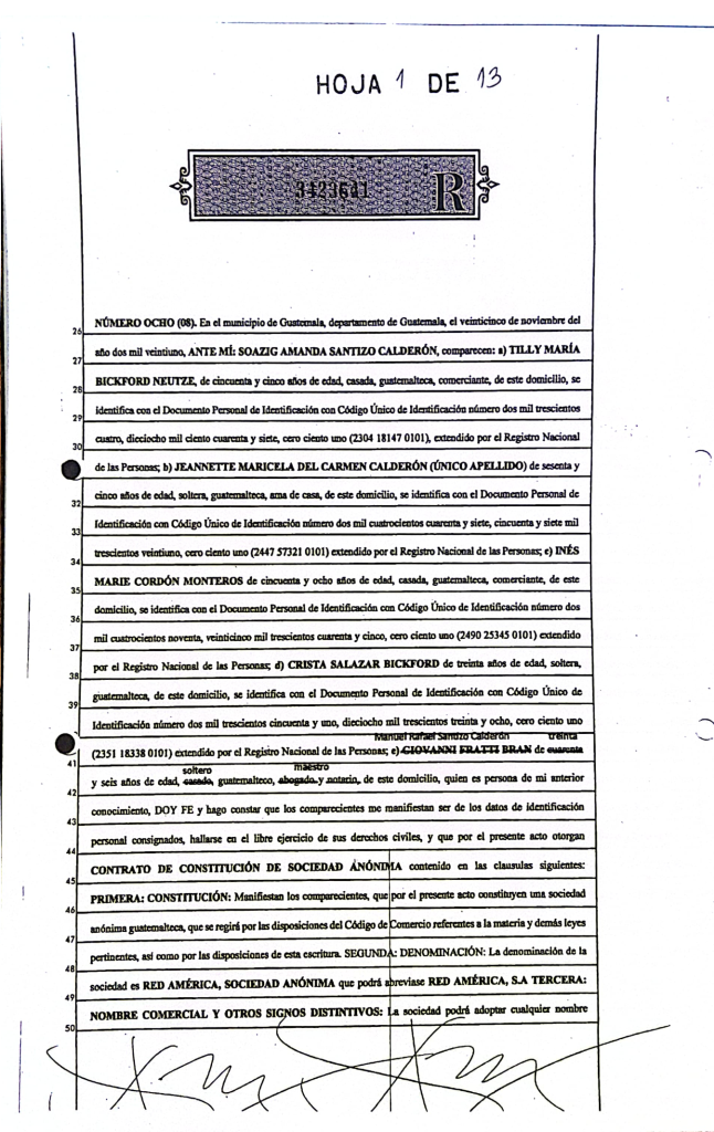 El “medio de comunicación” se constituyó bajo Red América, Sociedad Anónima el 25 de noviembre de 2021 por la abogada Soazig Amando Santizo Calderón. Su razón social es la “prestación de servicios de periodismo, publicidad y mercadeo”.