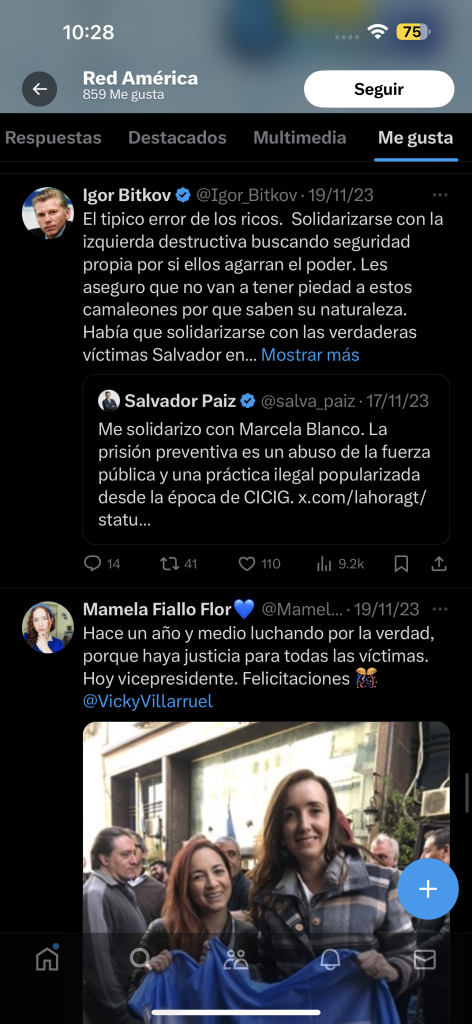 Otras de las cuentas con las que interactúa Red América es la de Igor Bitkov, un ruso implicado en la falsificación de documentos en Guatemala. Bitkov fue defendido por Amanda Santizo en dicho caso que fue investigado por la CICIG.