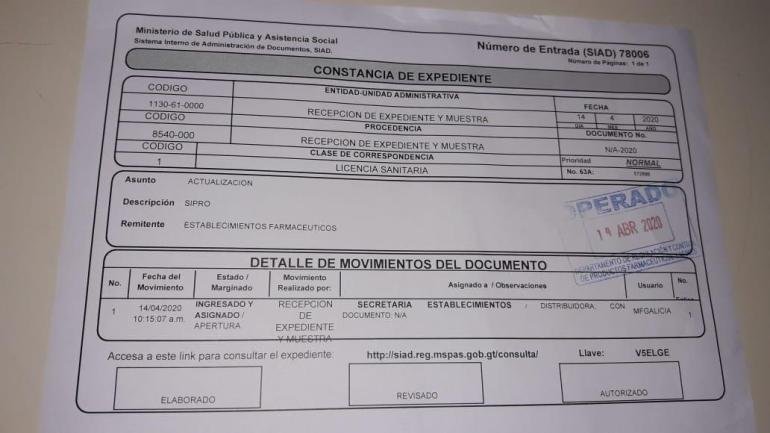 La empresa empezó a vender al Estado insumos médicos sin tener la licencia sanitaria y las anteriores autoridades del Ministerio de Salud no hicieron algo al respecto. Sipro, S.A. obtuvo su permiso sanitario el 26 de mayo de 2020, pero antes, ya había hecho 27 ventas a diferentes unidades ejecutoras de salud por un monto de Q1 millón 846 mil.