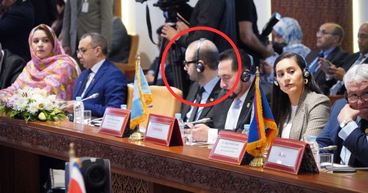 En la anterior fotografía se le ve a Jorge David Reyes Recinos, asesor de Nery Ramos, durante el viaje a Rabat, Marruecos, mientras usa un reloj Rolex Sea-Dweller que tiene un precio de US$22 mil (unos Q170 mil), según el sitio web de Rolex.