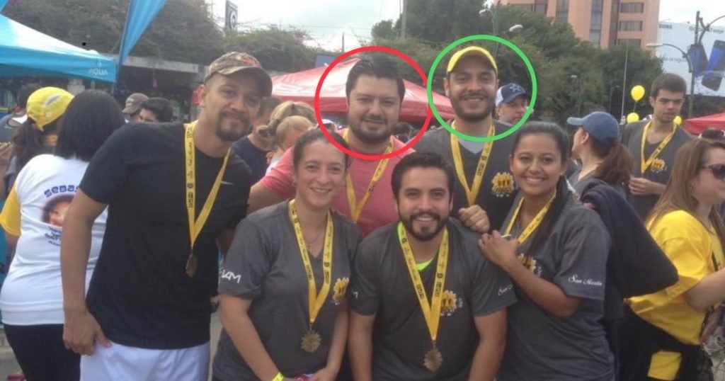 Pablo René Portocarrero Marroquín (círculo rojo) con Alejandro Ríos Ramírez (círculo verde) tras una carrera. (Fotografía: Vox Populi)