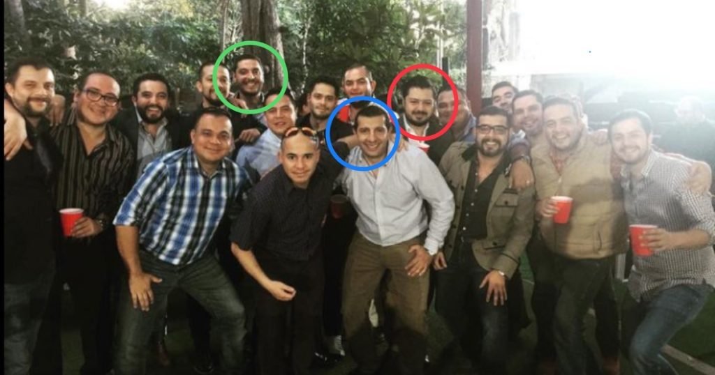 Ángel Guillermo Morales Mendoza (círculo rojo) con Alejandro Ríos Ramírez (círculo verde) y Juan Pablo Ríos Ramírez (círculo azul). Fotografía: Vox Populi
