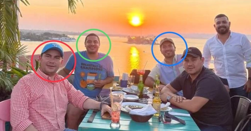 Ángel Guillermo Morales Mendoza (círculo rojo) con Alejandro Ríos Ramírez (círculo verde), Juan Carlos Ríos Ramírez (círculo azul) y Carlos Adolfo Martínez Leal (círculo amarillo). (Fotografía: Vox Populi)