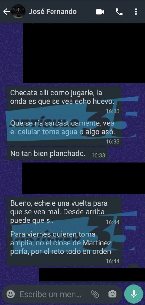 Este otro chat al que Artículo 35 y Vox Populi tuvieron acceso es el siguiente: “¿Tendremos alguna toma en donde se vea hecho huevo Rodas, en dónde se vea mal, riendo o haciendo caras?…la onda es que se vea echo huevo (sic), que se ría sarcásticamente, vea el celular, tomé agua o algo así?”.