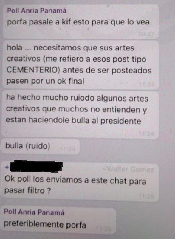 Uno de ellos es el panameño, Poll Anria, quien junto a su amigo el mexicano, Kif Nava, supervisan contenido de redes sociales, mensajes presidenciales, fotografías y les ordenan a los comunicadores de las diferentes instituciones (ministerios, secretarías, consejos, entre otros) del gobierno que deben y que no deben hacer.