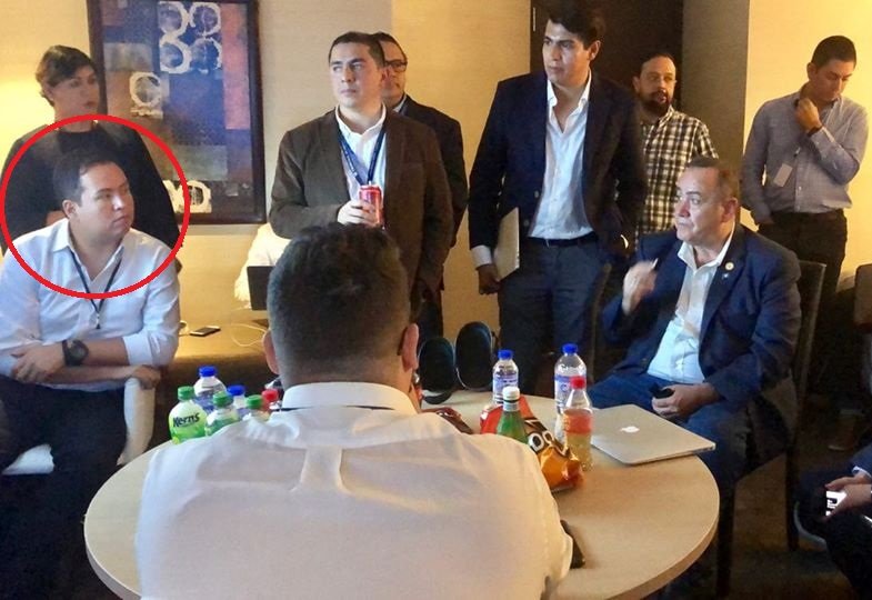 Luis Miguel Martínez, director ejecutivo de la Comisión de Centro de Gobierno aparece en la fotografía con los asesores de campaña de Alejandro Giammattei.
