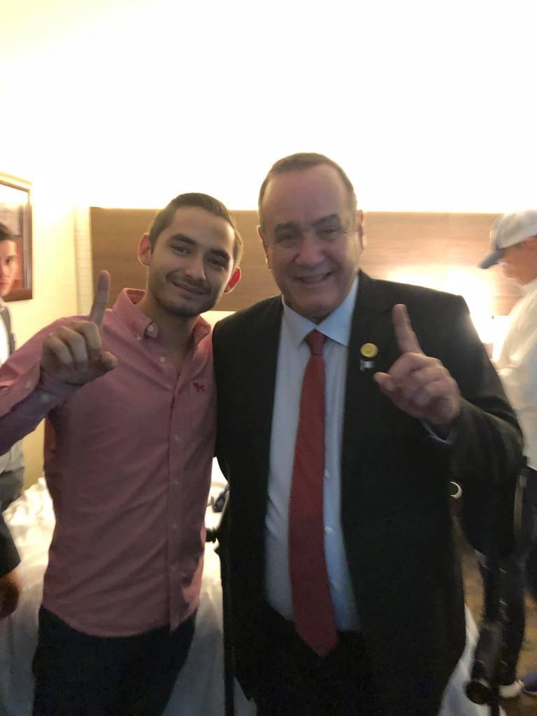 En sus redes sociales tiene varias fotos durante la campaña con Alejandro Giammattei y el actual ministro de relaciones exteriores, Pedro Brolo.