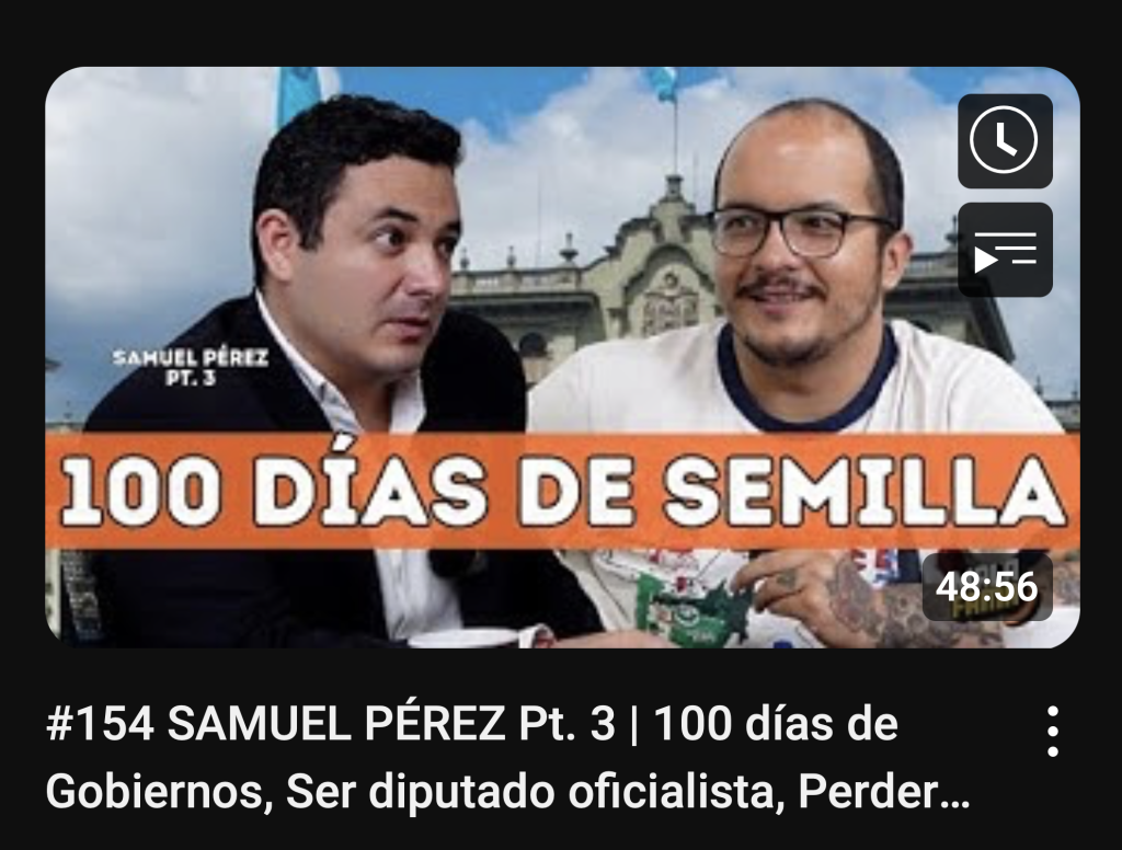 Durante el proceso electoral de 2023, un grupo de  afines al Movimiento Semilla produjo una serie de entrevistas con candidatos de aquella agrupación política, incluido el entonces presidenciable Bernardo Arévalo, que luego difundieron principalmente por la red social Tik Tok, “aclarando” que no pertenecían “a ningún partido político”.