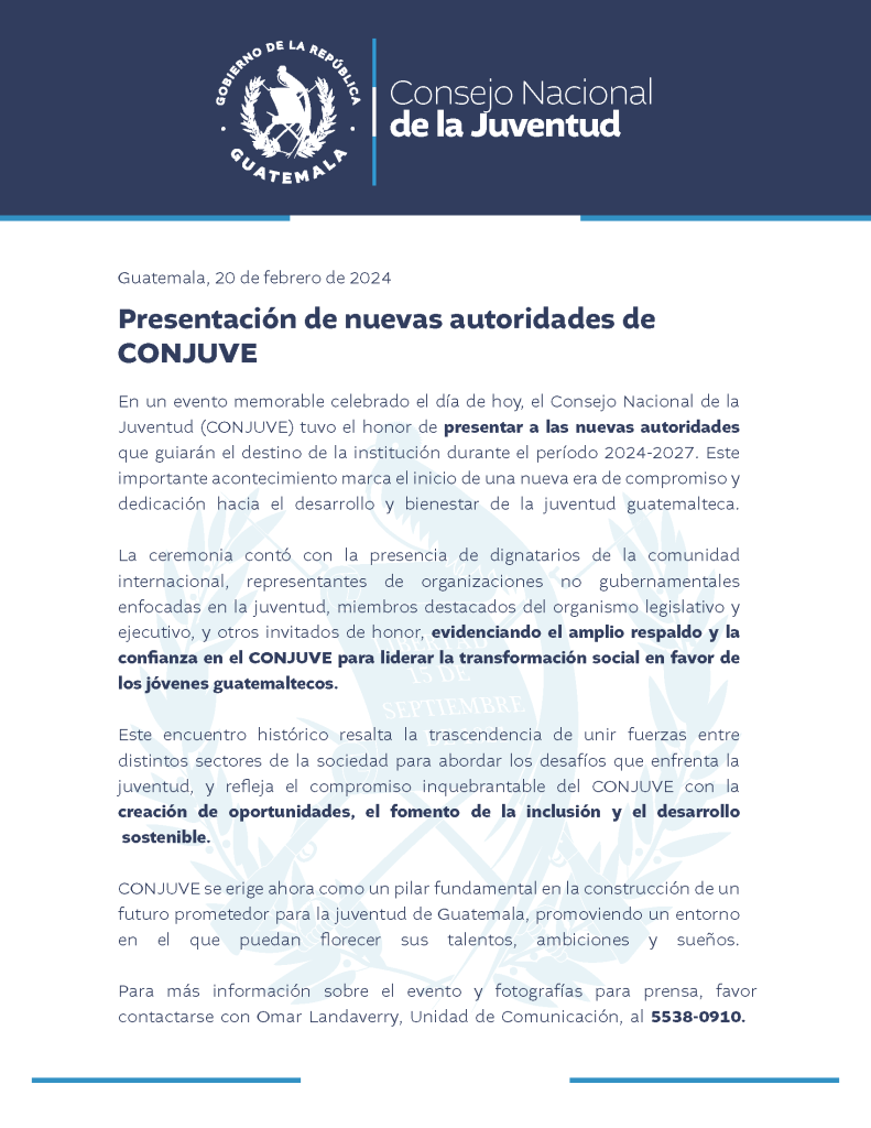 Omar Landaverry también estuvo ligado al Ejecutivo. El 20 de febrero la cuenta oficial del Consejo Nacional de la Juventud (Conjuve) publicó un comunicado de prensa en el que se presentaban a sus nuevas autoridades. En el último párrafo señalan que el contacto de la unidad de comunicación era Landaverry. Esto confirma su vinculo con la actual administración.
