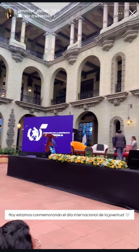 Jennifer De La Cruz también estuvo trabajando temas de comunicación (ad-honorem, según ella) en la Gobernación Departamental de Guatemala, institución que dirige Diego Eduardo De León Barrios, un funcionario polémico nombrado por Arévalo.