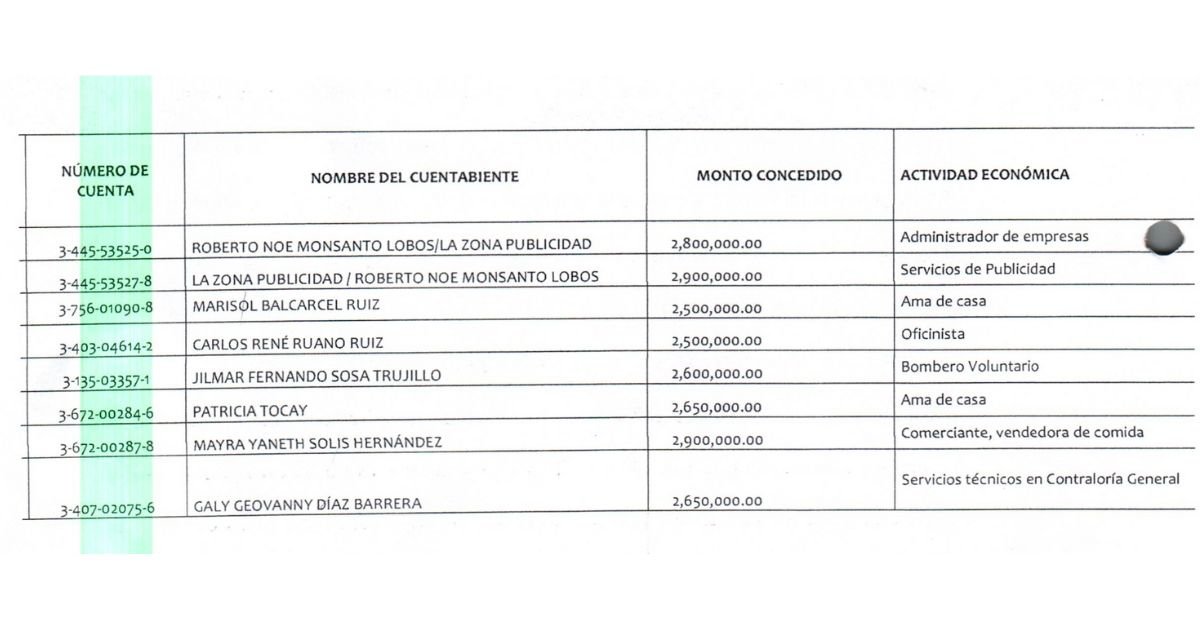 Los expedientes no contaban con el análisis sobre la capacidad de pago de los deudores y carecían de referencias crediticias de la Superintendencia de Bancos (SIB). Entre los beneficiarios había un bombero, dos amas de casa, una oficinista y un vendedor de comida.