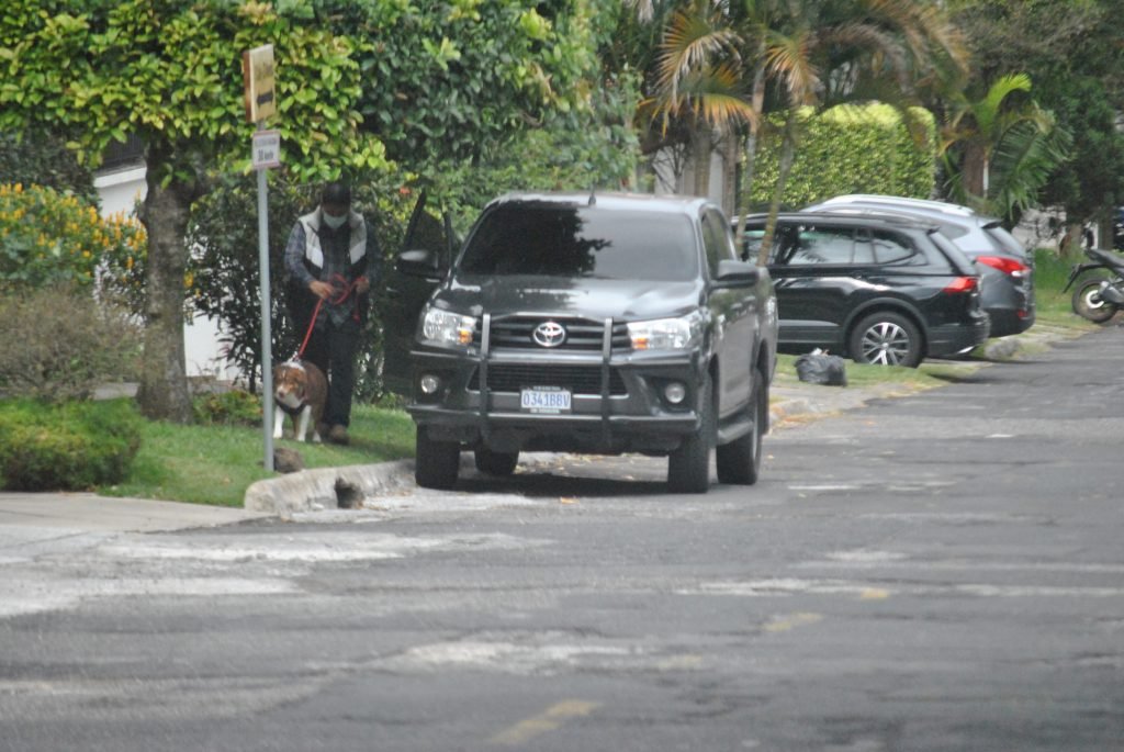 Desde ese edificio la seguridad presidencial saca a pasear a las mascotas de Ana Marcela Dinorah y Alejandro Eduardo, e incluso los llevan al veterinario. Durante el trabajo de campo se observó llegar a los agentes de la SAAS y bajar a uno de los canes del carro con las placas O341BBV (asignado a la seguridad de Alejandro Eduardo Giammattei Cáceres).