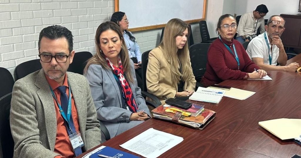 Quien sí llegó fue el subdirector general, Carlos Eduardo Woltke Martínez. en compañía de Mónica Ivana Rojas Zacarías, subdirectora financiera; Thelma Lucrecia Liuti Vargas, subdirectora técnica administrativa; Mónica Solange Sánchez, jefa del departamento de acciones judiciales y Leonardo Brooks Hernández, jefe del departamento de identificación y emisión de pasaportes.